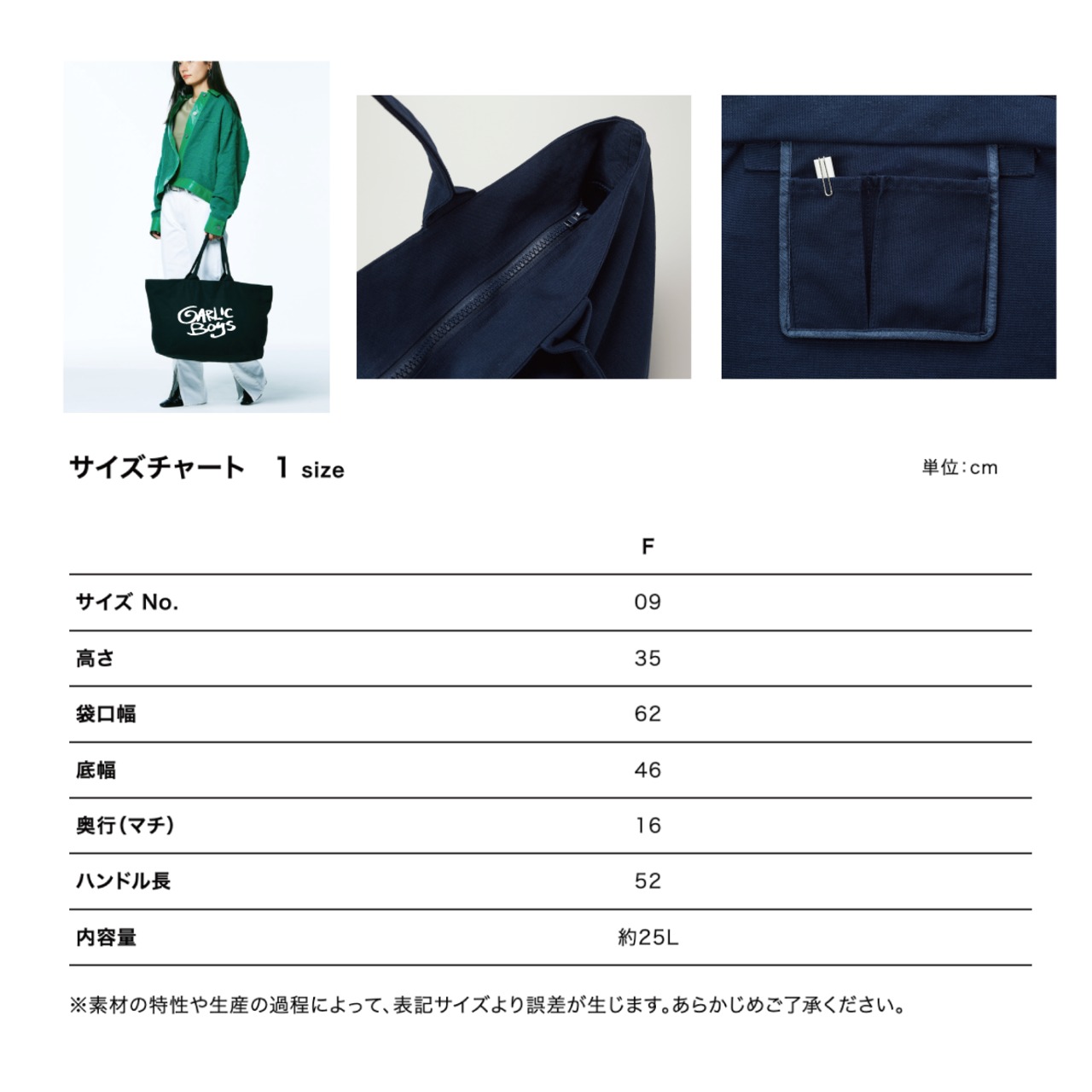 ファスナー付き ビッグトートバッグ